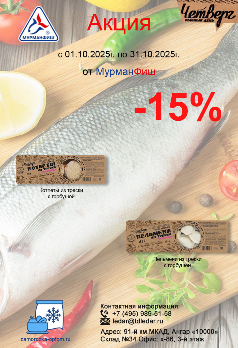 Скидки на замороженную рыбную продукцию от Мурманфиш